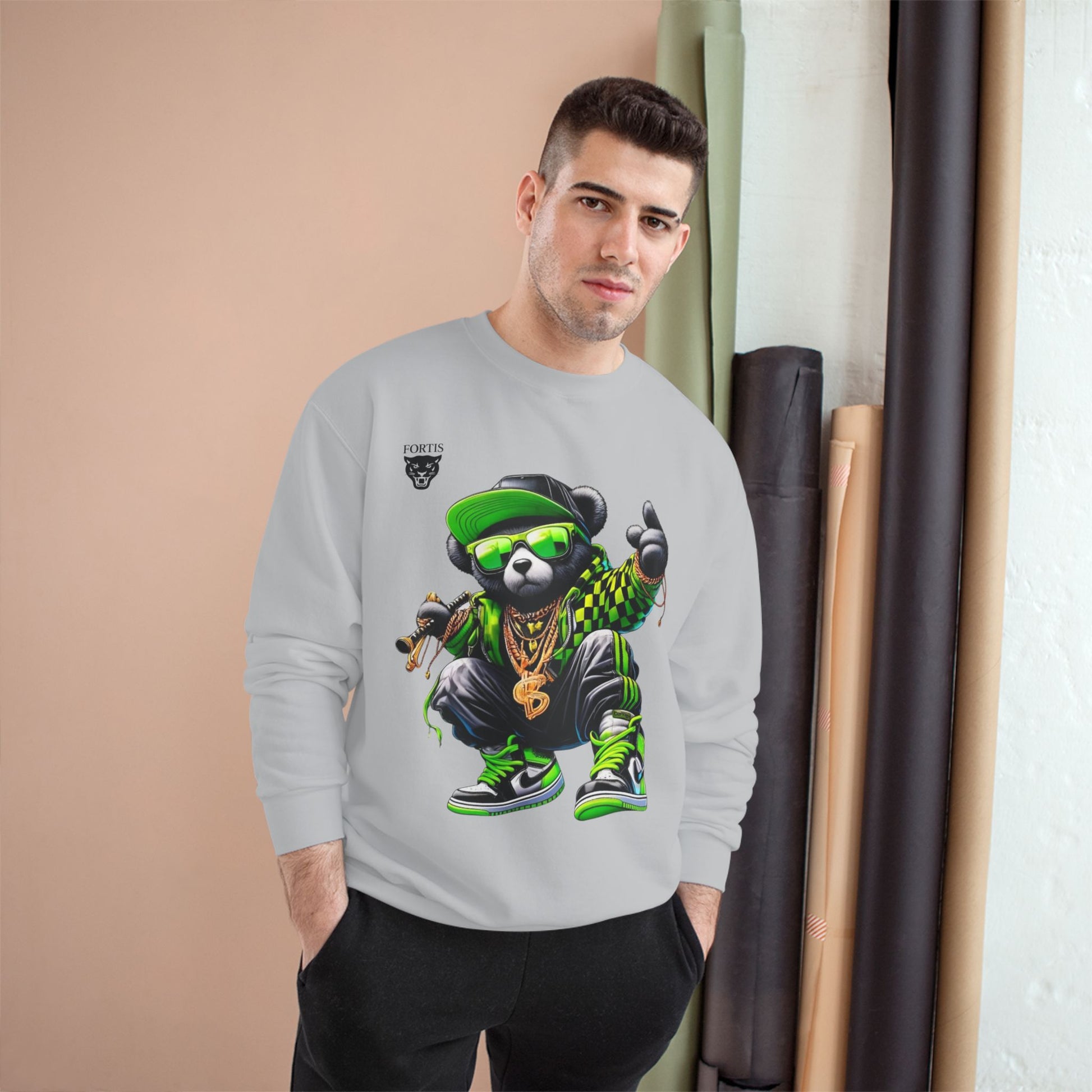 Hip Hop Bear Champion Sweatshirt — Streetwear Crewneck with ‘Champion’ Style Graphic