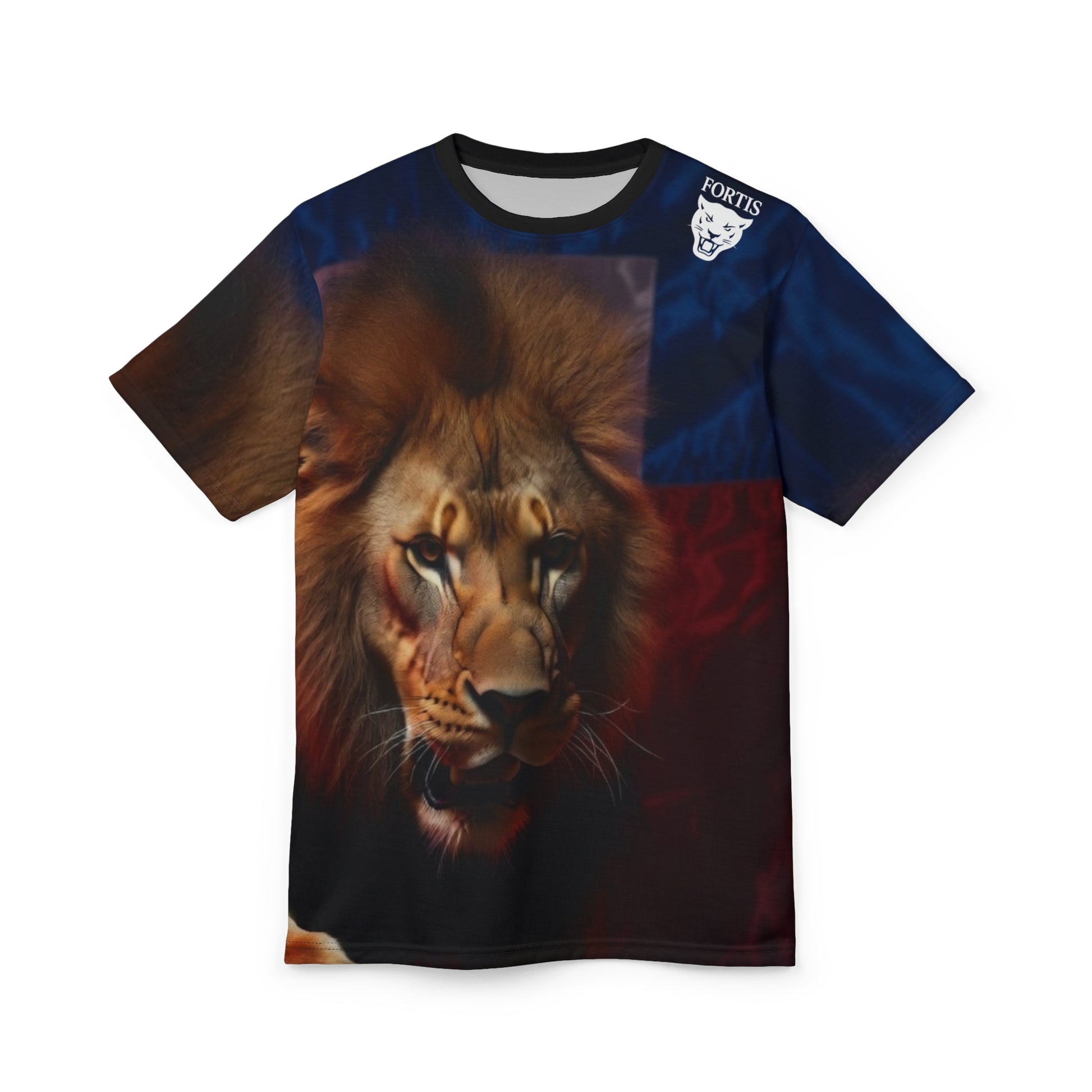 This all-over printed tee brings a striking, cinematic lion portrait to every seam. Deep, painterly colors blend across the front and back so the mane seems to move with you. Lightweight polyester keeps the print vivid and the shirt feeling breathable while the ribbed collar and shoulder tape keep the shape crisp after many wears. Wear it when you want your style to read bold and intentional — whether you’re heading to an outdoor meetup, a creative studio session, or a casual night that calls for something a little dramatic. The regular fit and tagless finish make it comfortable for long days, and the full-coverage print ensures the artwork stays the focus.
