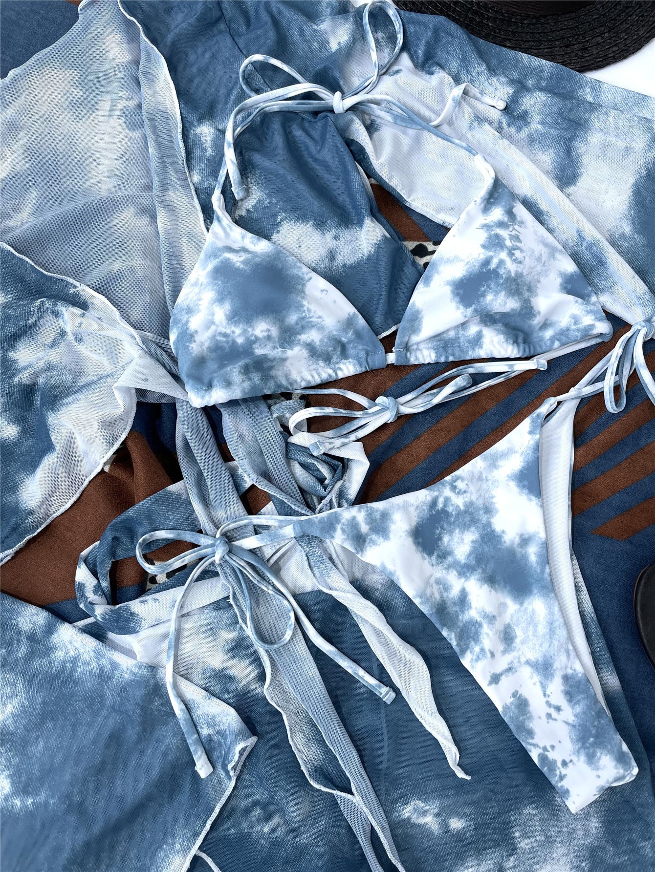 Tie Dye A Manches Longues Bikini Femme Maillot De Bain Femmes Maillots De Bain Quatre PiEces Bikini Ensemble Sarong Licou Baigneur Maillot De BBain Maillot De Bain V